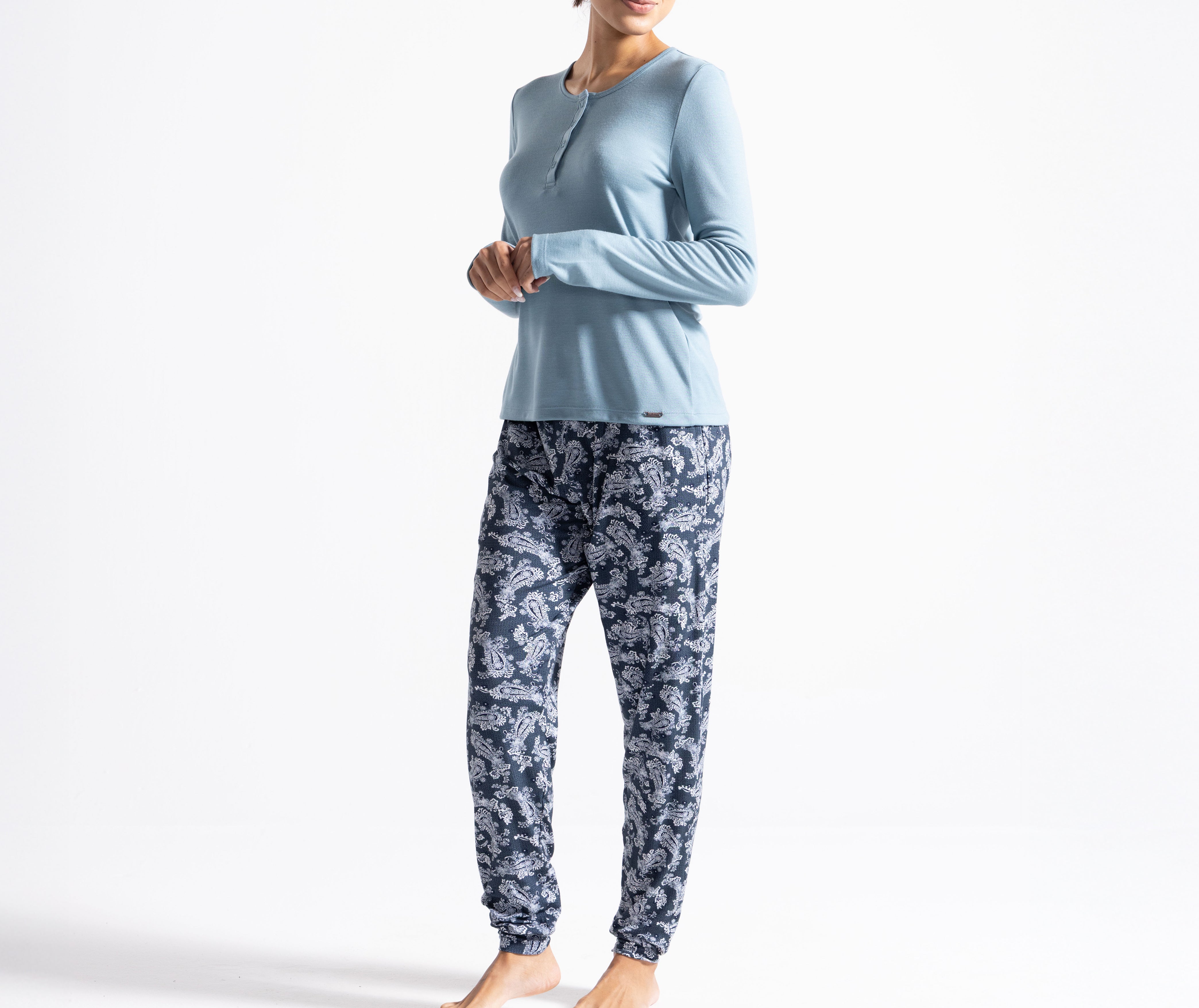 Embrace effortless elegance with our Tapestry of Soft Romance Long Sleeve Top. Designed with a flattering Henley neckline, this versatile piece is crafted from a premium blend of Modal and Polyester, offering a soft, breathable feel against the skin. Finished with Silver Plus technology, it provides enhanced freshness and long-lasting comfort.