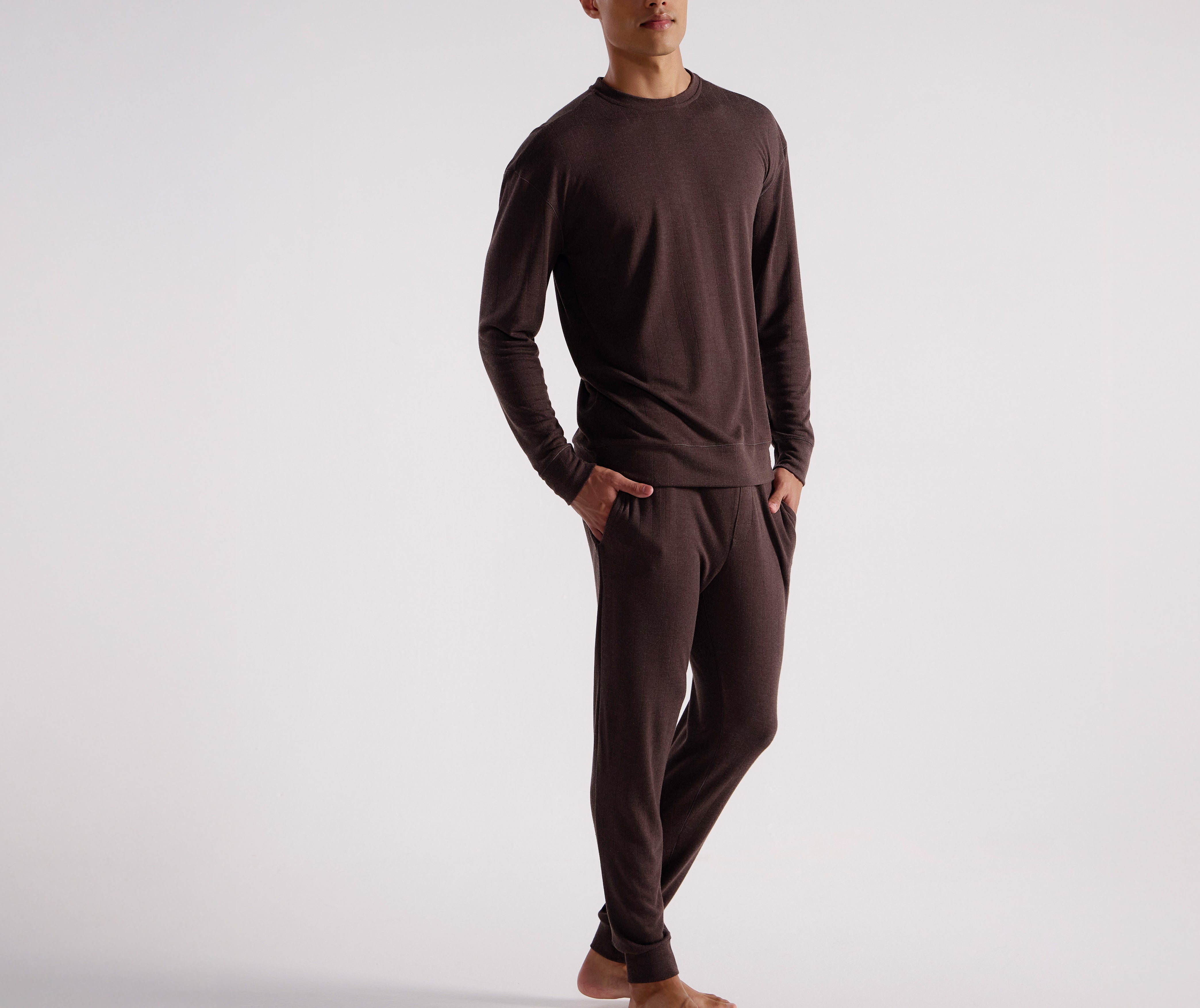 Indulge in ultimate comfort with JOCKEY's Crew Neck Easy-Wear Pyjama Top. Made from a super-soft blend of Modal and Polyester, this top ensures overnight bliss. The cosy interlock fabric features a Silver-Plus Finish for warmth and freshness. With a relaxed fit, crew neckline, and long sleeves, it offers effortless style and freedom of movement. Complete with cuffed hems and a tonal embroidered JOCKEY logo on the waistband, it exudes elegance.