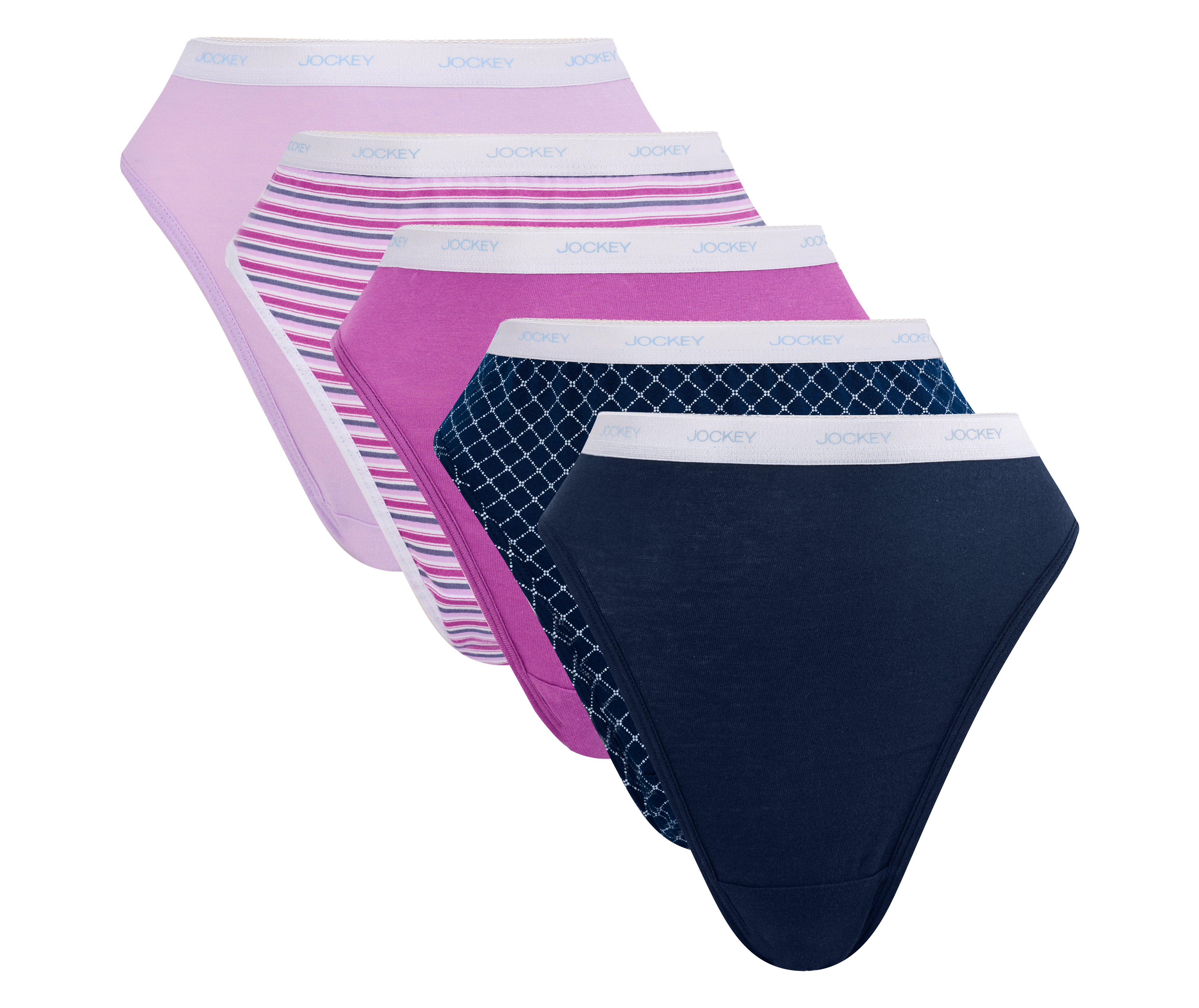 The Jockey® classic cotton French Cut is made with 100% cotton and the signature Jockey logo elastic waistband for a soft, comfortable fit. This classic style has a higher-cut leg for a flattering, smooth look.